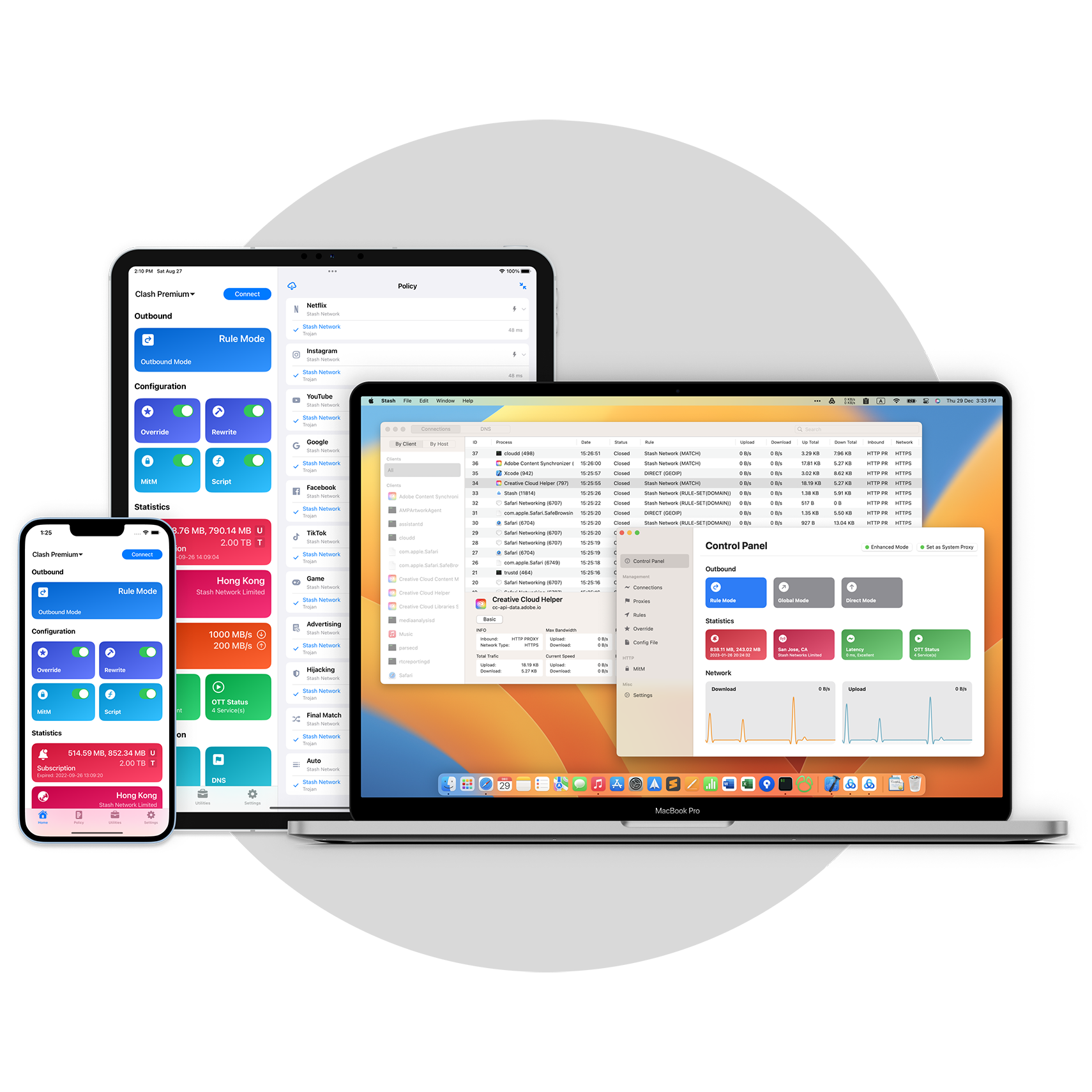 在您的任何设备上享受更优质的网络连接, 无论是 macOS、iOS、Android、Windows 或者 Linux,覆盖手机、电脑和路由器等多种使用场景